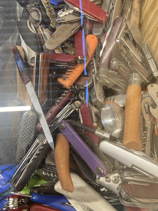 Dla mnie to była nie lada gratka, bo dostałam mnóstwo ciekawych informacji na temat funkcjonowania lotniska, zawodów okololotniskowych (jest ich aż siedemdziesiąt!) i przewożenia niektórych bagaży. Zwłaszcza temat przewożenia bagaży większość z nas zainteresował, bo jest tam specjalna sala, w której zgromadzone są wszystkie skonfiskowane pasażerom przedmioty. Nie wiedzieć czemu królują scyzoryki i nożyczki, ale zdziwilibyście się,miłe jest w gablotce drewnianych tłuczków do mięsa. Na ścianie nad gablotką wisiał także miecz (nikt do końca nie znał historii i okoliczności jego konfiskaty), drewniane nunczako i mnóstwo innych. Dowiedziałam się także, że jeśli kiedykolwiek kupię za granicą ekskluzywny krem do twarzy zawierający kawior z jesiotra, to nie dość że mi go na zabiorą, to jeszcze zapłacę grzywnę. Ponieważ jesiotr jest pod ochroną. Dotyczy to także chińskich (głównie) maści zawierających wyciągi z chronionych u nas zwierząt. Na miejscu w Państwie Środka możecie się ty,i specyfikami smarować do woli, zapijając dla kurażu wódką wężówką, z butelki której łypię na Was martwym okiem chroniony wąż. Konwencja CITES, na podstawie której jest ściśle określone, co wolno a czego nie wolno przewozić, obowiązuje także na statkach.