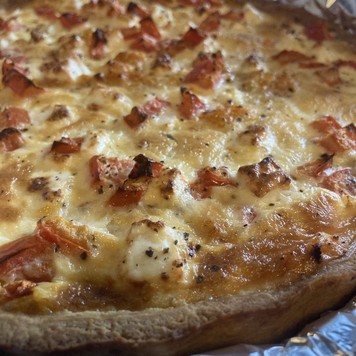 - tarta z pieczoną dynią hokkaido, fetą i pomidorami.