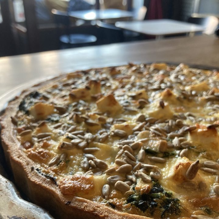 - tarta ze szpinakiem, fetą, mozzarellą fior di latte i pestkami słonecznika.