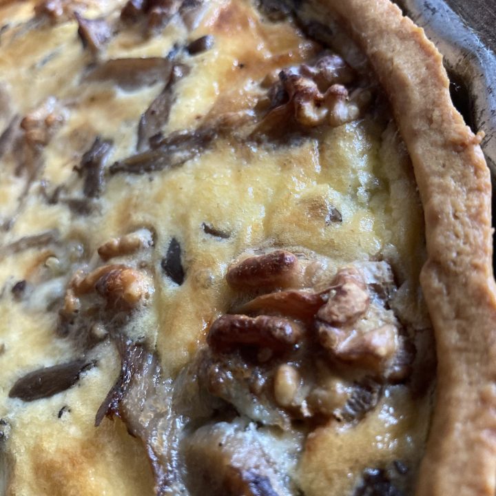 - tarta z boczniakami, gorgonzolą, orzechami włoskimi i oliwą truflową.