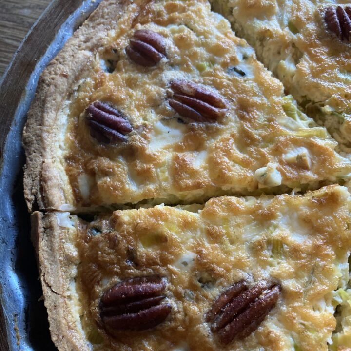 - tarta porowa z serem z niebieską pleśnią i orzechami pecan.