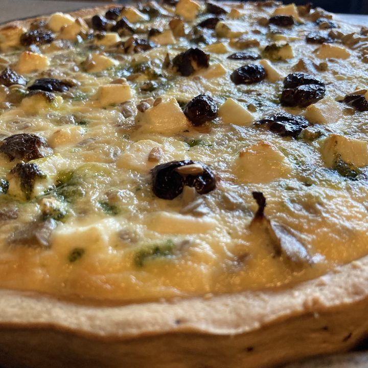 • tarta z bakłażanem, oliwkami liguryjskimi, fetą i słonecznikiem.