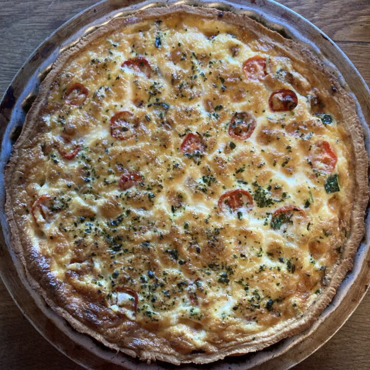 - tarta z cukinią, mozzarellą i pomidorkami koktajlowymi.