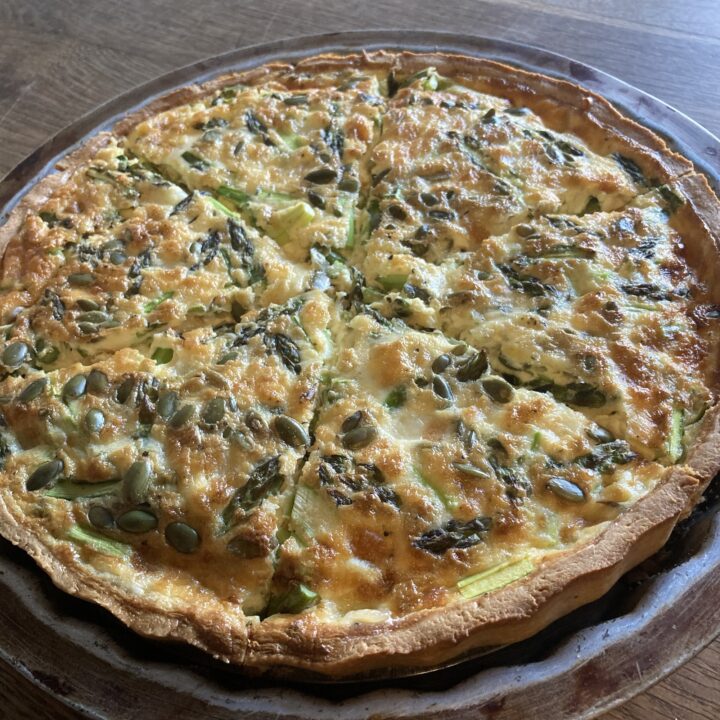 - tarta ze szparagami, mozzarellą fior di latte i pestkami słonecznika.