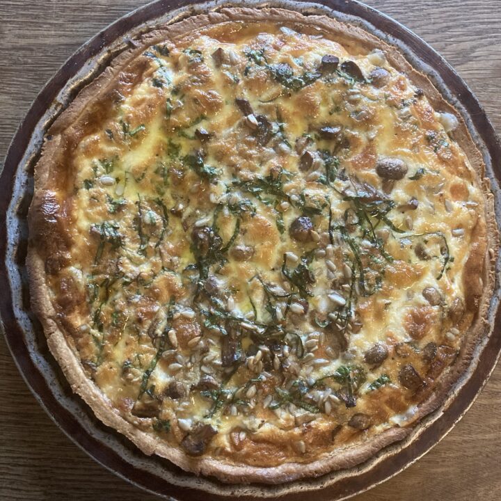 • tarta z mini pieczarkami, mozzarellą fior di latte, bazylią i oliwą truflową.