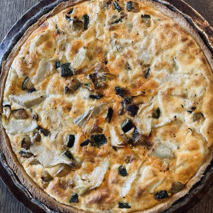 - tarta z cukinią, karczochami i serem pecorino romano.