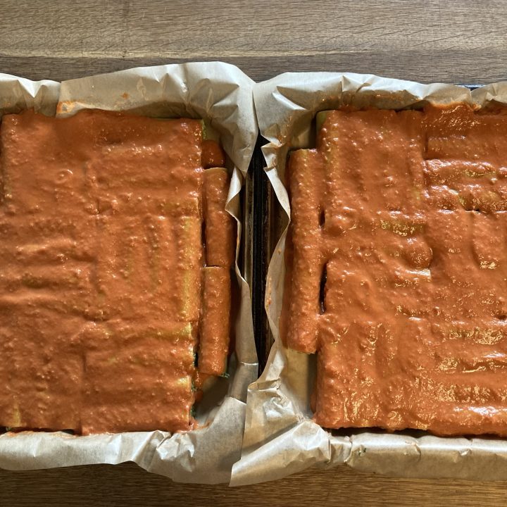 - CANNELLONI – duże rurki makaronowe, nadziewane szpinakiem z ricottą i mozzarellą fior di latte, zapieczone w sosie rosè z pomidorów z dodatkiem oliwy extra vergine, śmietanki, bazylii i czosnku, posypane tartym serem grana padano