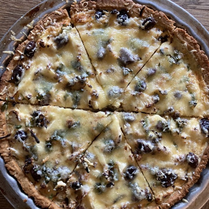 - tarta z pieczonym kalafiorem, oliwkami liguryjskimi i serem dobbiaco.